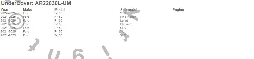 UnderCover - UnderCover Fusion P/N AR22030L-UM Features: