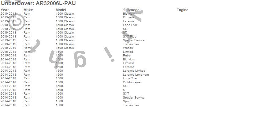 UnderCover - UnderCover Fusion P/N AR32006L-PAU Features: