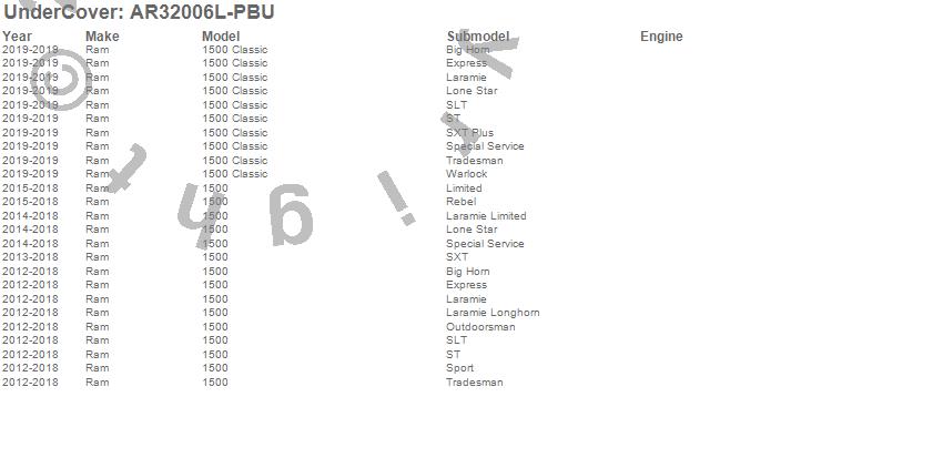 UnderCover - UnderCover Fusion P/N AR32006L-PBU Features: