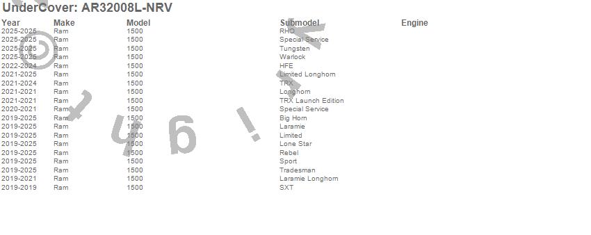 UnderCover - UnderCover Fusion P/N AR32008L-NRV Features: