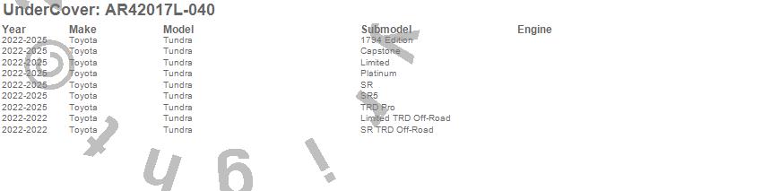 UnderCover - UnderCover Fusion P/N AR42017L-040 Features: