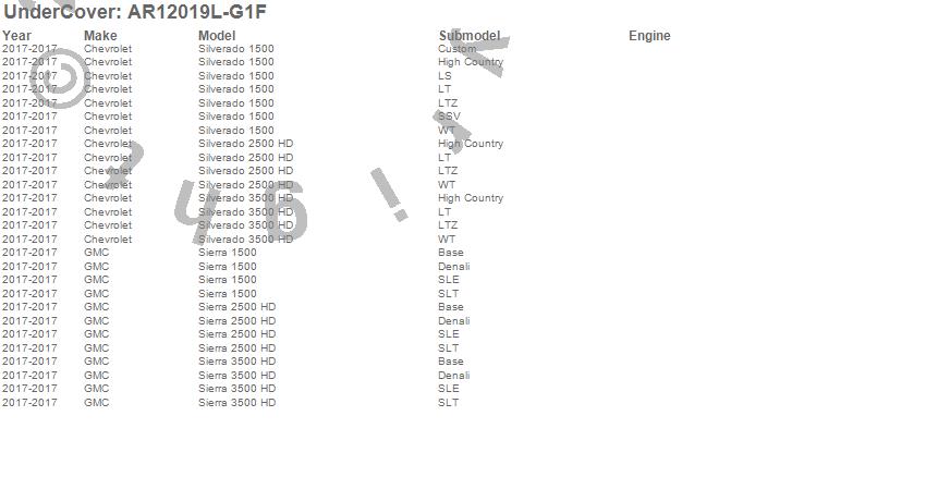 UnderCover - UnderCover Fusion P/N AR12019L-G1F Features: