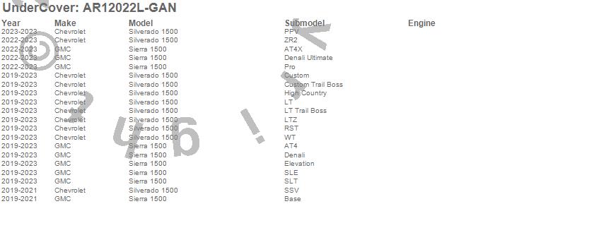 UnderCover - UnderCover Fusion P/N AR12022L-GAN Features:
