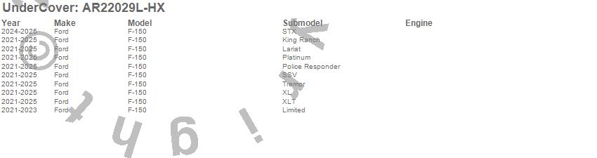 UnderCover - UnderCover Fusion P/N AR22029L-HX Features: