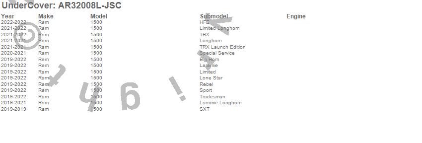 UnderCover - UnderCover Fusion P/N AR32008L-JSC Features: