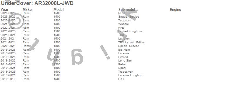 UnderCover - UnderCover Fusion P/N AR32008L-JWD Features:
