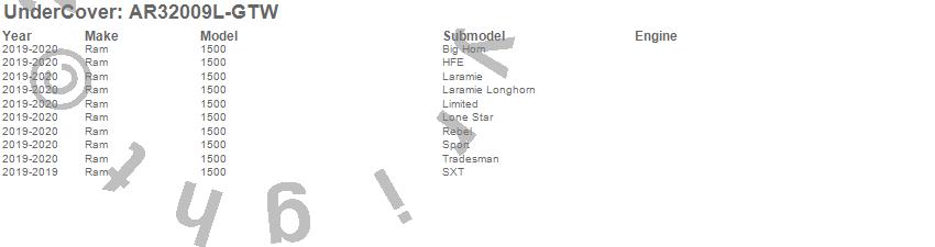 UnderCover - UnderCover Fusion P/N AR32009L-GTW Features: