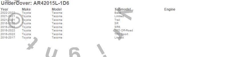 UnderCover - UnderCover Fusion P/N AR42015L-1D6 Features: