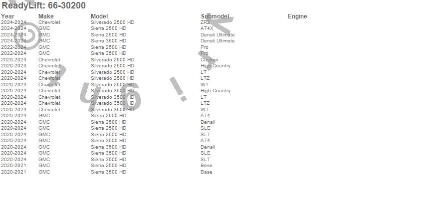 Below is an abbreviated list of applications for the Front Leveling Kit.