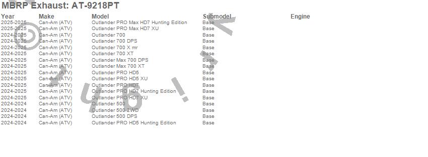 Outlander 500, Outlander 500 2WD, Outlander 500 DPS, Outlander 700, Outlander 700 DPS, Outlander 700 X mr, Outlander 700 XT, Outlander PRO HD5, Outlander PRO HD5 Hunting Edition, Outlander PRO HD5 XU, Outlander PRO HD7, Outlander PRO HD7 Hunting Edition, Outlander PRO HD7 XU, Can-Am (ATV), 2025, 2024