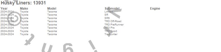 Below is an abbreviated list of applications for the WeatherBeater Floor Liner.