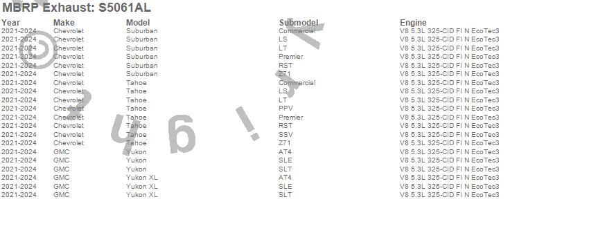 Below is an abbreviated list of applications for the Armor Lite Cat Back Exhaust System.