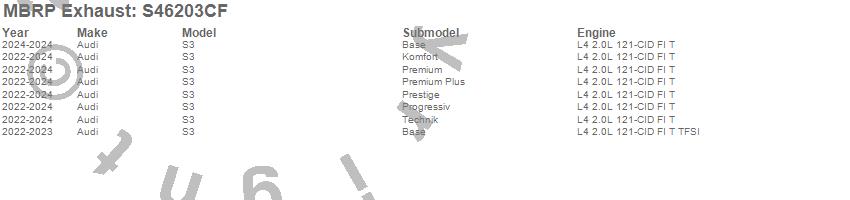 Below is an abbreviated list of applications for the Armor Pro Cat Back Exhaust System.