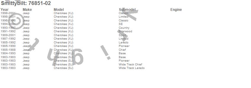 Cherokee (SJ), Cherokee (XJ), Jeep, 2001, 2000, 1999, 1998, 1997, 1996, 1995, 1994, 1993, 1992, 1991, 1990, 1989, 1988, 1987, 1986, 1985