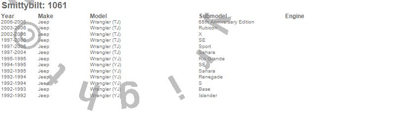 Wrangler (TJ), Wrangler (YJ), Jeep, 2006, 2005, 2004, 2003, 2002, 2001, 2000, 1999, 1998, 1997, 1995, 1994, 1993, 1992