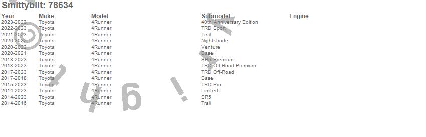 4Runner, Toyota, 2024, 2023, 2022, 2021, 2020, 2019, 2018, 2017, 2016, 2015, 2014
