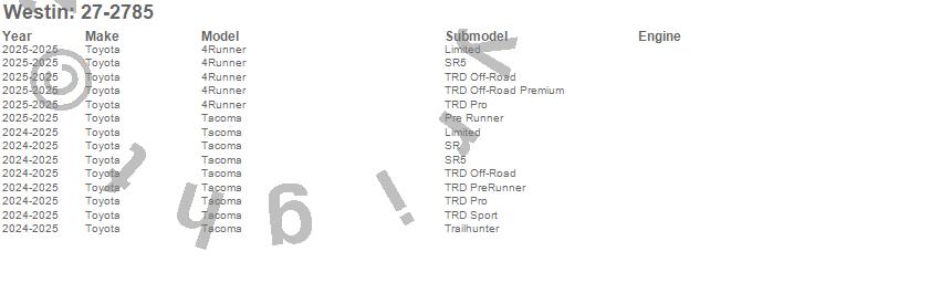 Westin - 27 Series Mount Kit P/N 27-2785 Features: