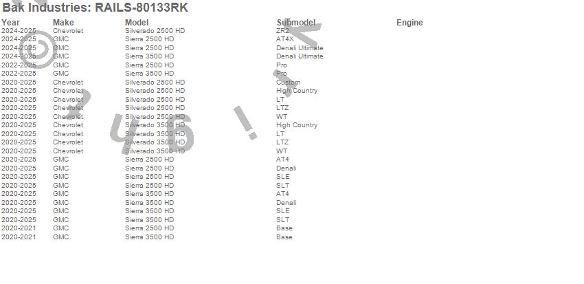 BAK Industries - Revolver X4ts Rails P/N RAILS-80133RK Features: