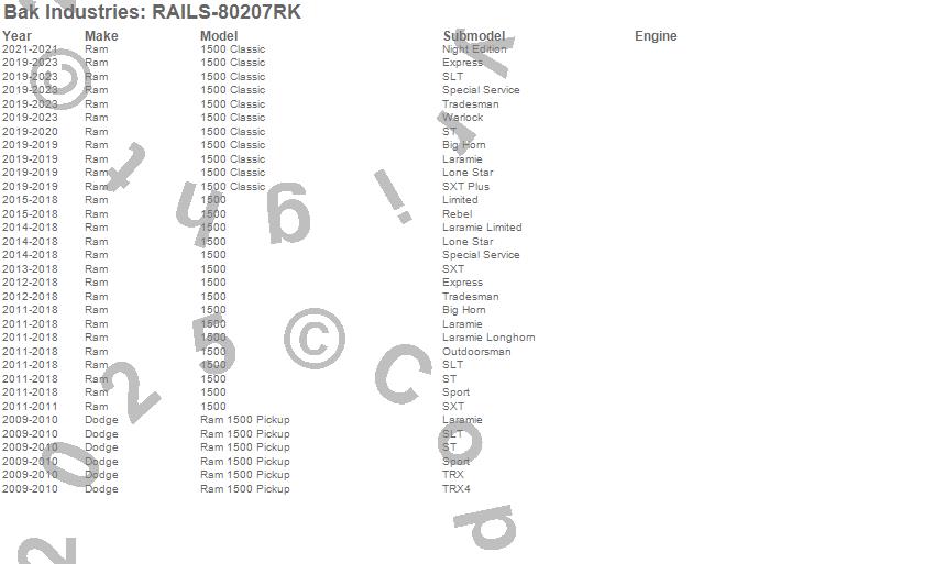 BAK Industries - Revolver X4ts Rails P/N RAILS-80207RK Features: