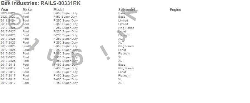BAK Industries - Revolver X4ts Rails P/N RAILS-80331RK Features: