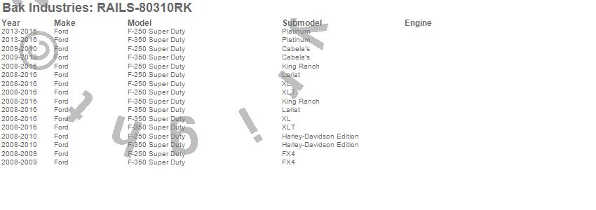 BAK Industries - Revolver X4ts Rails P/N RAILS-80310RK Features: