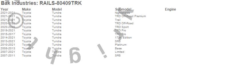 BAK Industries - Revolver X4ts Rails P/N RAILS-80409TRK Features: