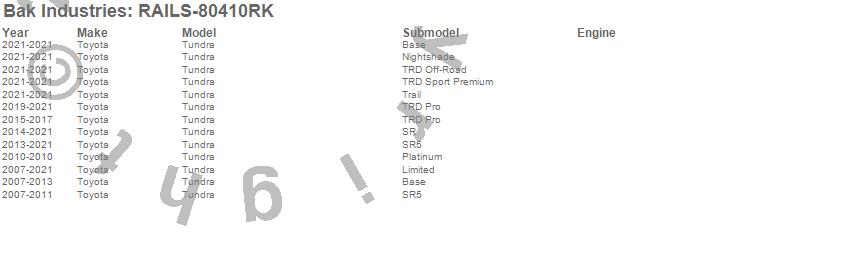 BAK Industries - Revolver X4ts Rails P/N RAILS-80410RK Features: