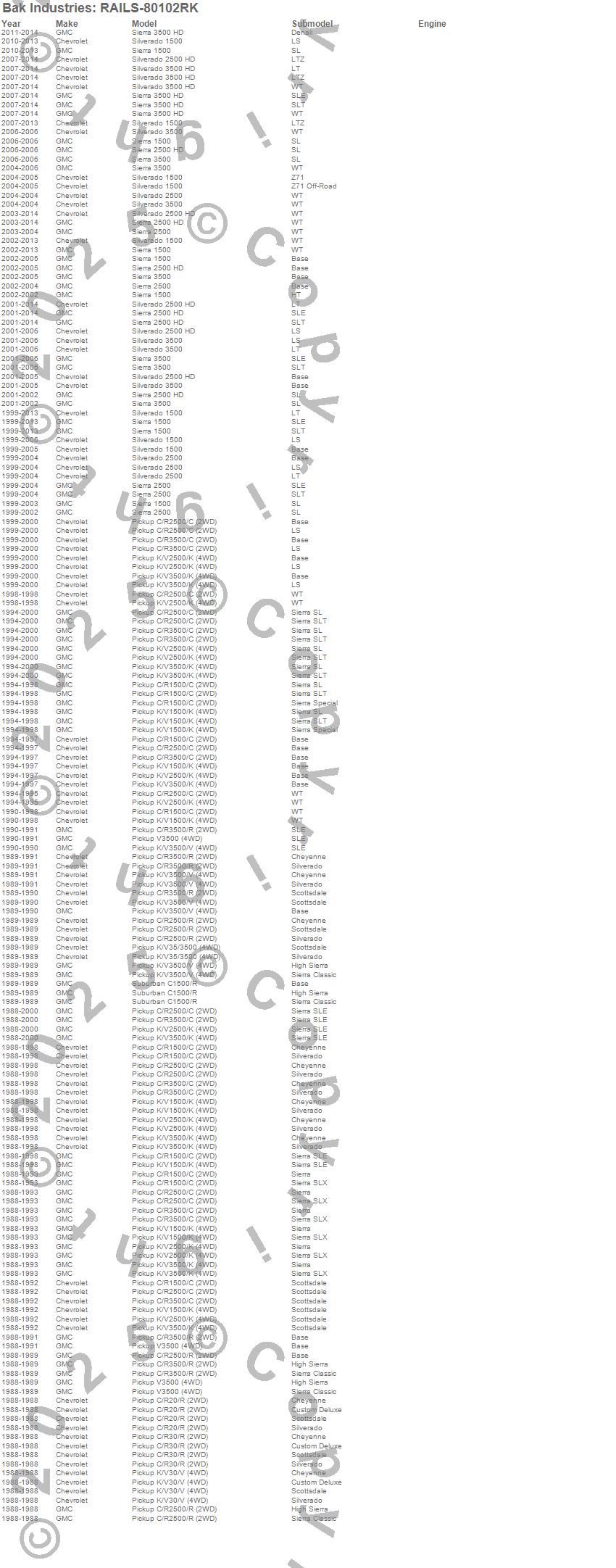 BAK Industries - Revolver X4ts Rails P/N RAILS-80102RK Features: