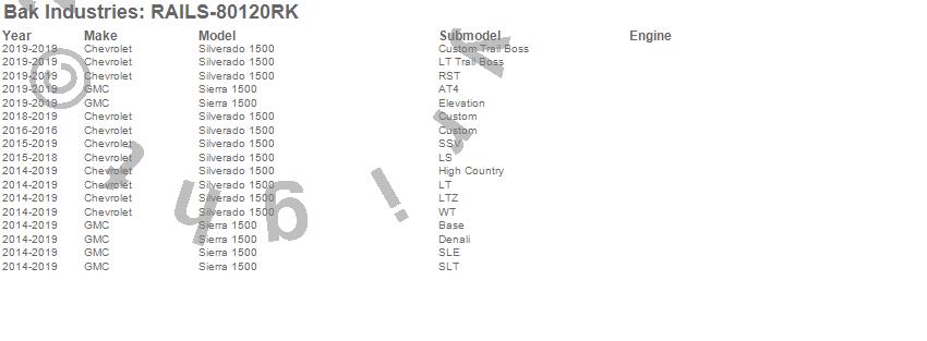 BAK Industries - Revolver X4ts Rails P/N RAILS-80120RK Features:
