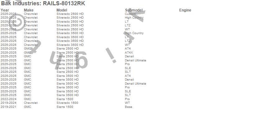 BAK Industries - Revolver X4ts Rails P/N RAILS-80132RK Features: