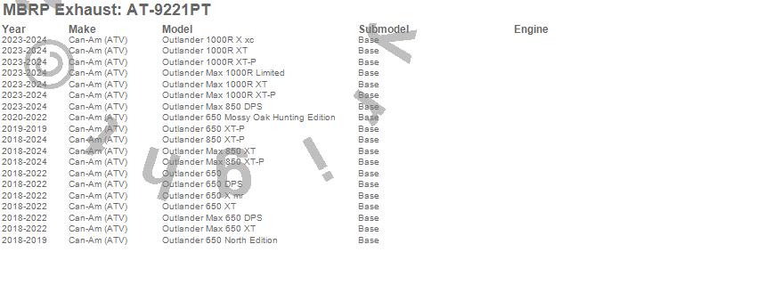 Outlander 1000R X xc, Outlander 1000R XT, Outlander 1000R XT-P, Outlander 650, Outlander 650 DPS, Outlander 650 Mossy Oak Hunting Edition, Outlander 650 North Edition, Outlander 650 X mr, Outlander 650 XT, Outlander 650 XT-P, Outlander 850 XT-P, Outlander Max 1000R Limited, Outlander Max 1000R XT, Outlander Max 1000R XT-P, Outlander Max 650 DPS, Outlander Max 650 XT, Outlander Max 850 DPS, Outlander Max 850 XT, Outlander Max 850 XT-P, Can-Am (ATV)