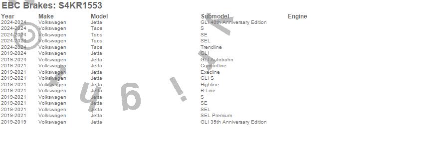 Below is an abbreviated list of applications for the S4 Kits Redstuff and USR Rotor.