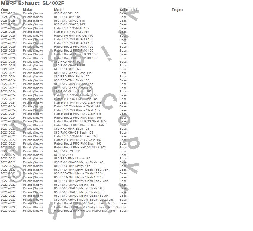 550 RMK EVO 144, 600 RMK 144, 650 PRO-RMK 155, 650 PRO-RMK Matryx 155, 650 RMK KHAOS Matryx Slash 146, 650 RMK Khaos Slash 146, 650 RMK SP 155, 850 PRO-RMK 155, 850 PRO-RMK 165, 850 PRO-RMK Matryx 155, 850 PRO-RMK Matryx Slash 155 2.75in., 850 PRO-RMK Matryx Slash 155 3in., 850 PRO-RMK Matryx Slash 163 3in., 850 PRO-RMK Matryx Slash 165 2.75in., 850 PRO-RMK Slash 155, 850 PRO-RMK Slash 163, 850 PRO-RMK Slash 165, 850 RMK KHAOS 146, 850 RMK KHAOS 155, 850 RMK KHAOS 165