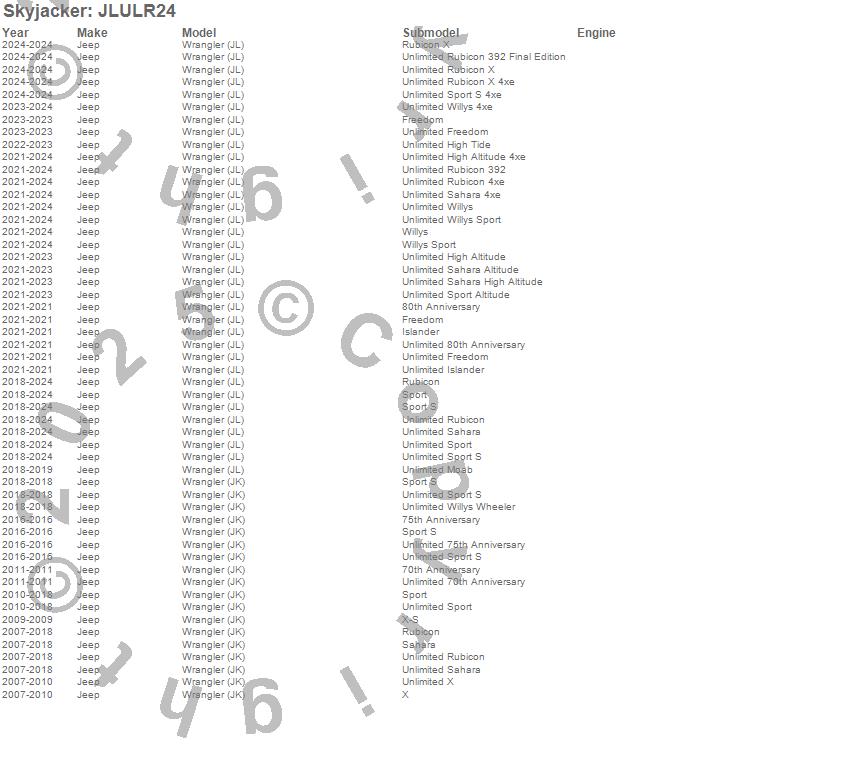 Wrangler (JK), Wrangler (JL), Jeep, 2024, 2023, 2022, 2021, 2020, 2019, 2018, 2017, 2016, 2015, 2014, 2013, 2012, 2011, 2010, 2009, 2008