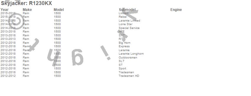 1500, Ram, 2018, 2017, 2016, 2015, 2014, 2013, 2012