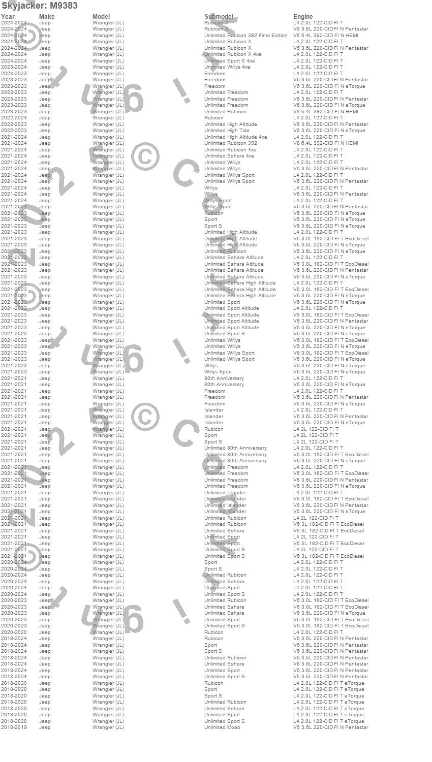 Wrangler (JL), Jeep, 2024, 2023, 2022, 2021, 2020, 2019, 2018