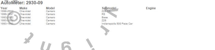 Below is an abbreviated list of applications for the Phantom Direct Fit Gauge Kit.