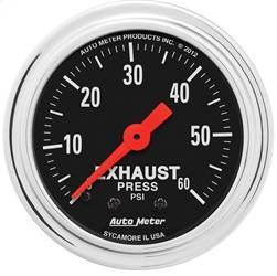 AutoMeter 2415 Traditional Chrome Mechanical Exhaust Pressure Gauge 2-1/16 in. - Black Dial Face - Fluorescent Red Pointer - White Incandescent Lighting - Mechanical - 30 IN HG/60 PSI