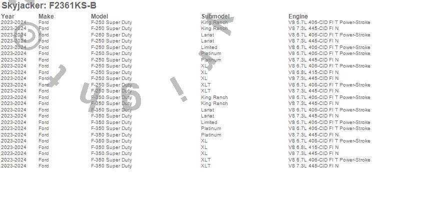 Skyjacker - Suspension Lift Kit w/Shock P/N F2361KS-B Features: