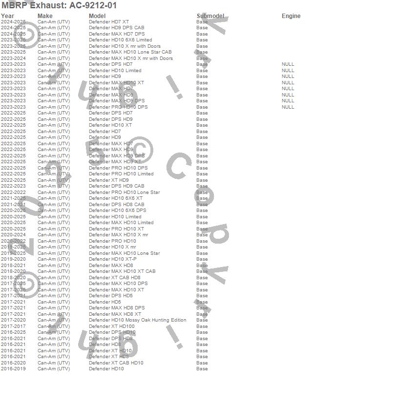 Defender DPS HD10, Defender DPS HD5, Defender DPS HD7, Defender DPS HD8, Defender DPS HD8 CAB, Defender DPS HD9, Defender DPS HD9 CAB, Defender HD10, Defender HD10 6X6 DPS, Defender HD10 6X6 Limited, Defender HD10 6X6 XT, Defender HD10 Limited, Defender HD10 Mossy Oak Hunting Edition, Defender HD10 X mr, Defender HD10 X mr with Doors, Defender HD10 XT, Defender HD10 XT-P, Defender HD5, Defender HD7, Defender HD7 XT