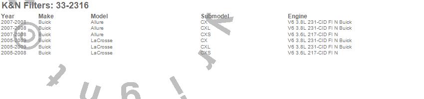 Below is an abbreviated list of applications for the Air Filter.