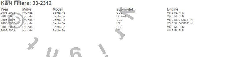 Below is an abbreviated list of applications for the Air Filter.