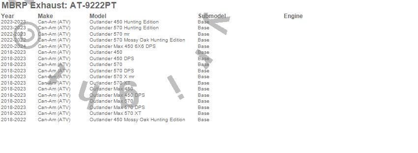 Below is an abbreviated list of applications for the ATV Exhaust System With Performance Muffler.