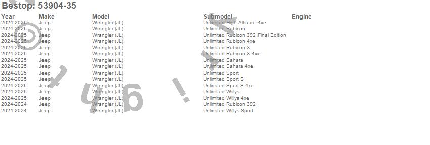 Below is an abbreviated list of applications for the Halftop Soft Top.