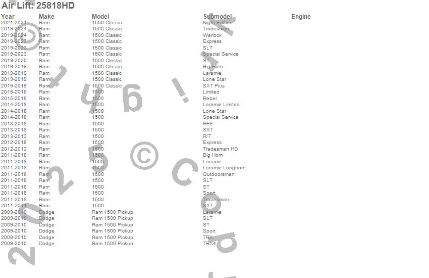 Below is an abbreviated list of applications for the Air Lift 1000 Heavy Duty Combo Kit.