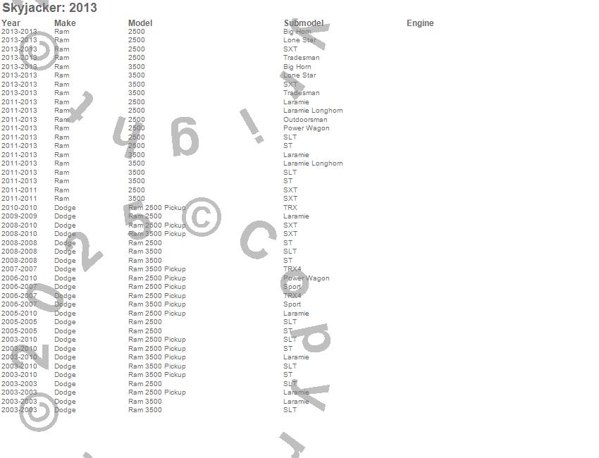 2500, 3500, Ram 2500, Ram 3500, Dodge, Ram, 2013, 2012, 2011, 2010, 2009, 2008, 2007, 2006, 2005, 2004, 2003