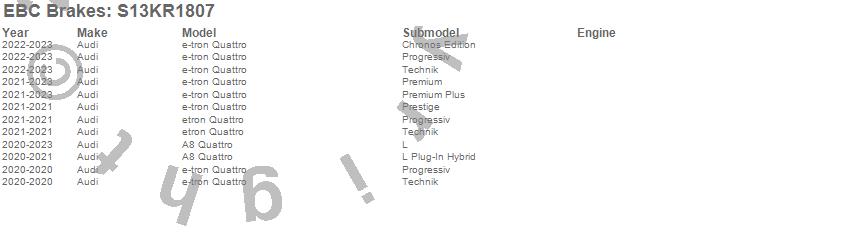 Below is an abbreviated list of applications for the S13 Kits Yellowstuff and RK Rotors.