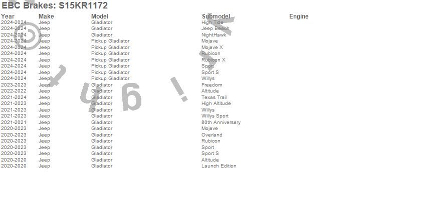 Below is an abbreviated list of applications for the S15 Kit Extra Duty and USR Rotors.