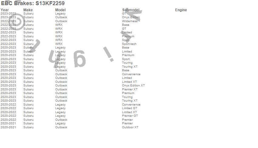 Below is an abbreviated list of applications for the S13 Kits Yellowstuff and RK Rotors.