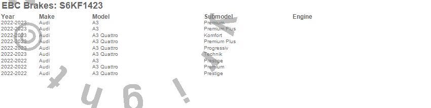 Below is an abbreviated list of applications for the S6 Kits Bluestuff and GD Rotors.